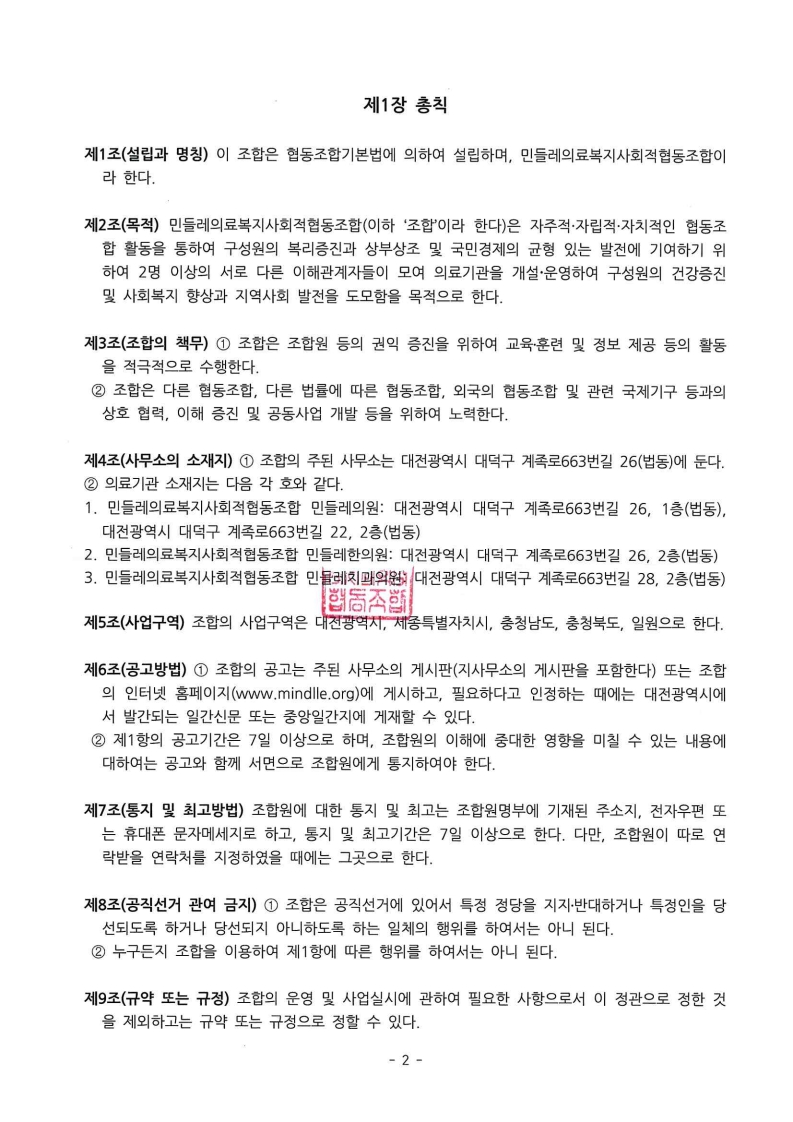 민들레의료복지사회적협동조합 정관(2025.4.24)