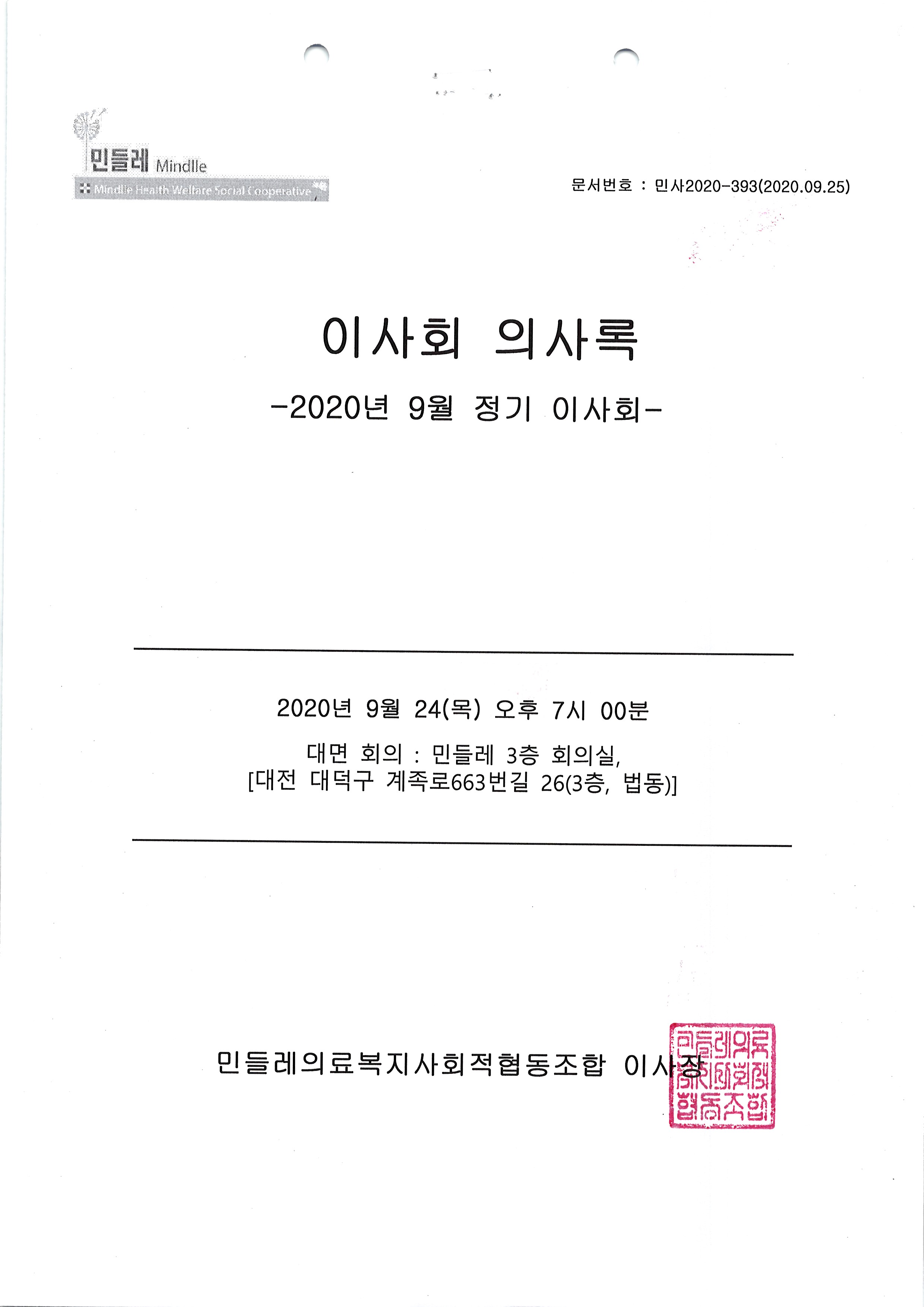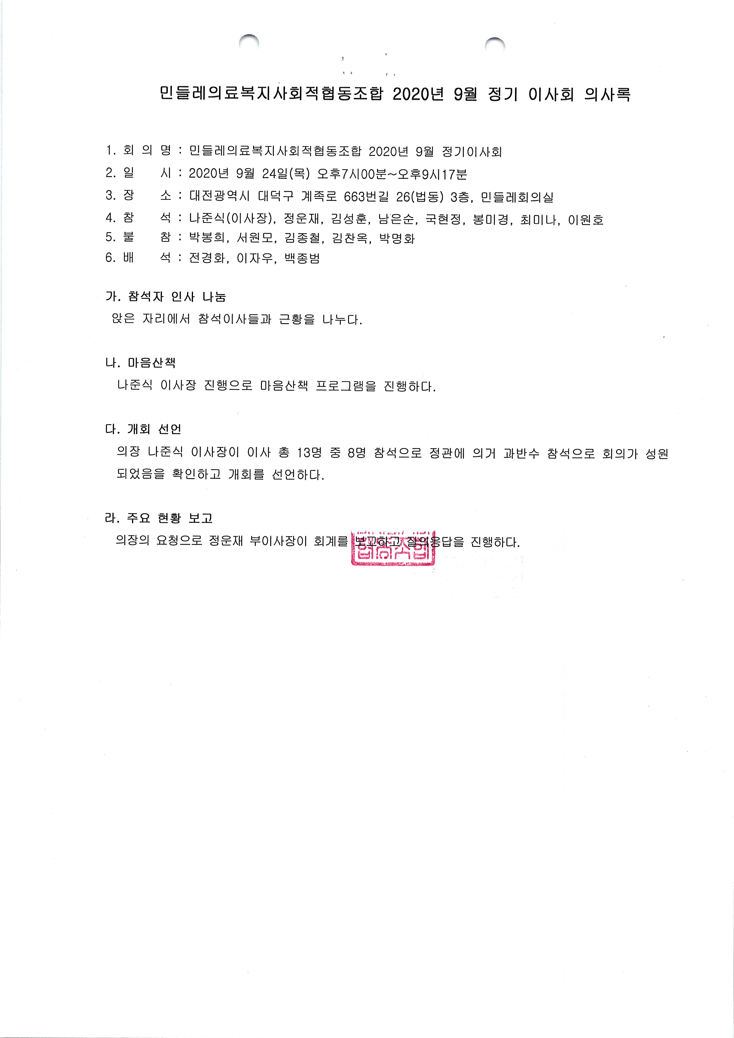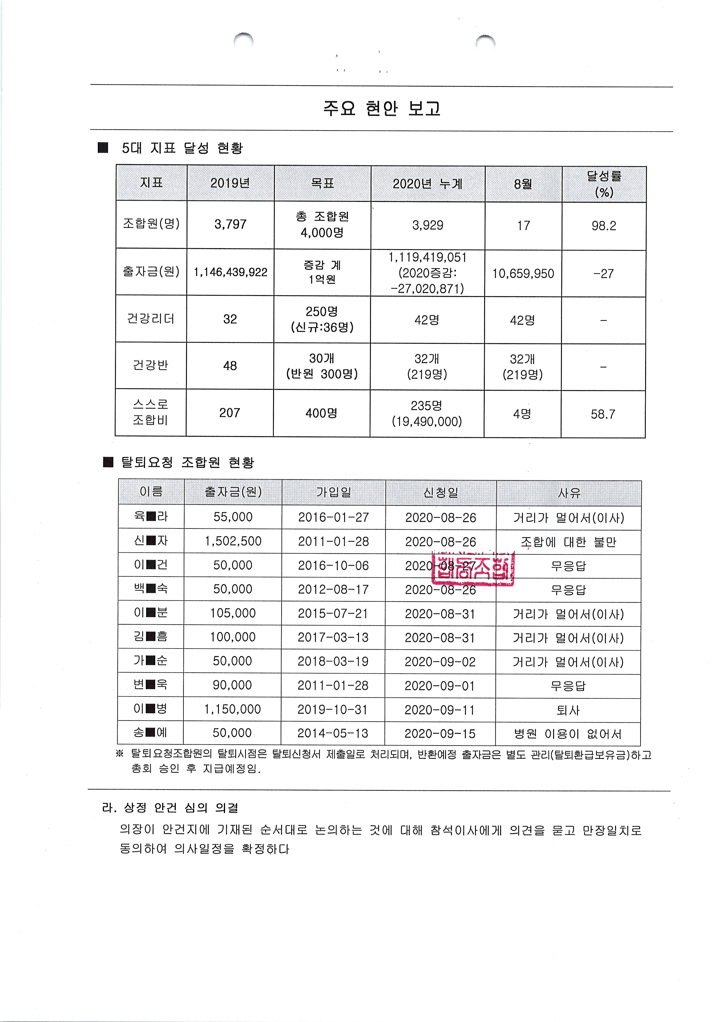[2020-09] 정기이사회 결과보고