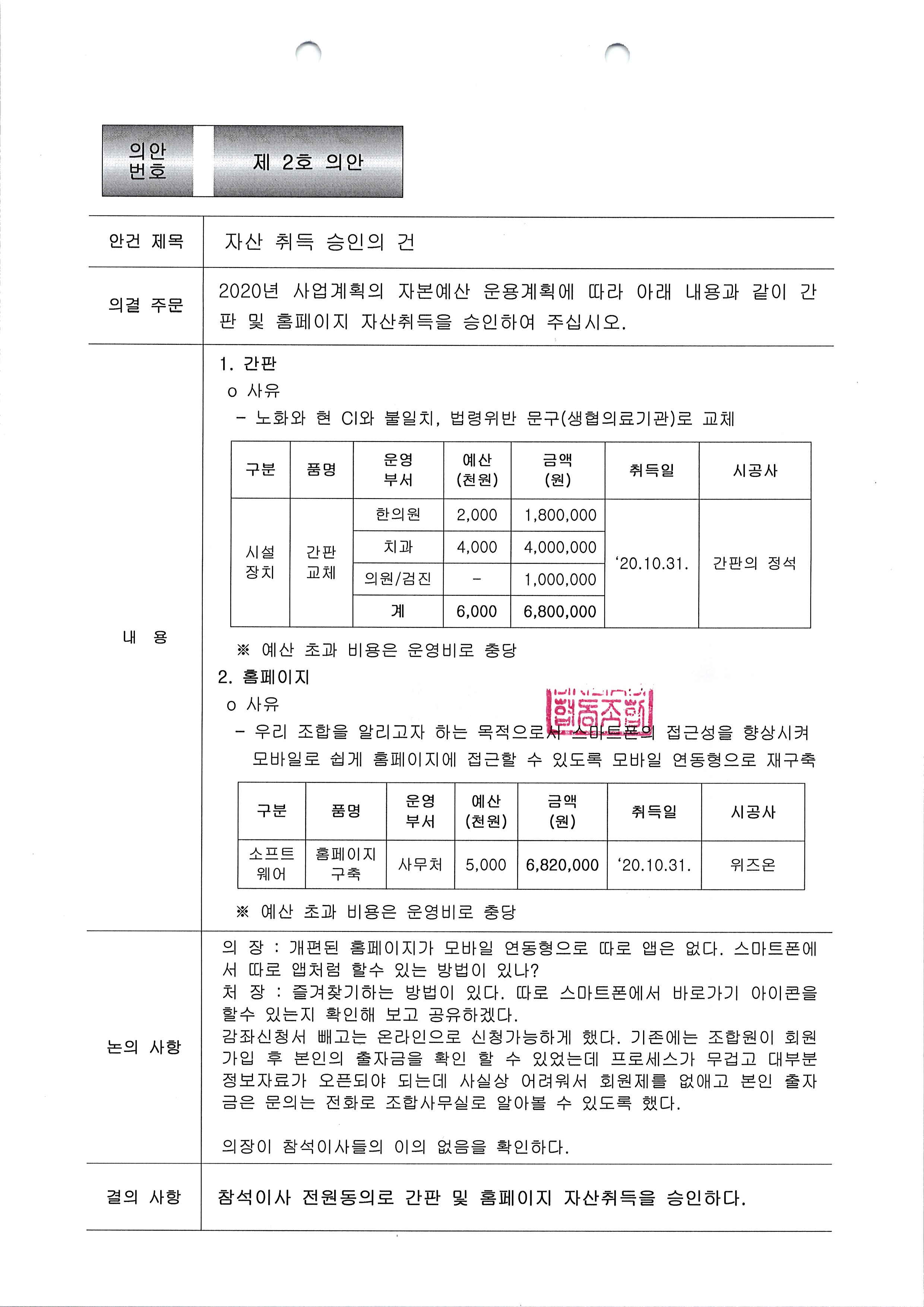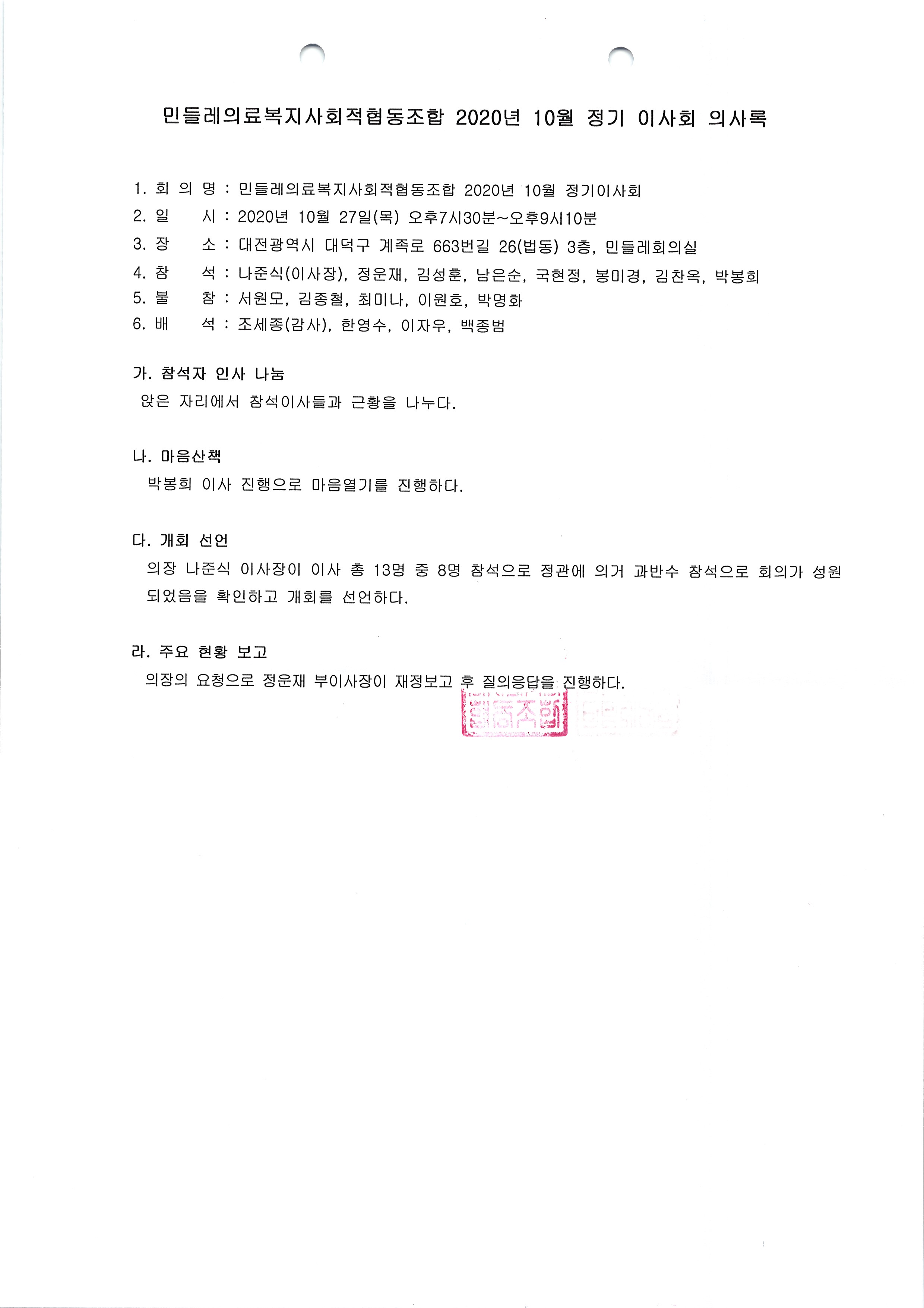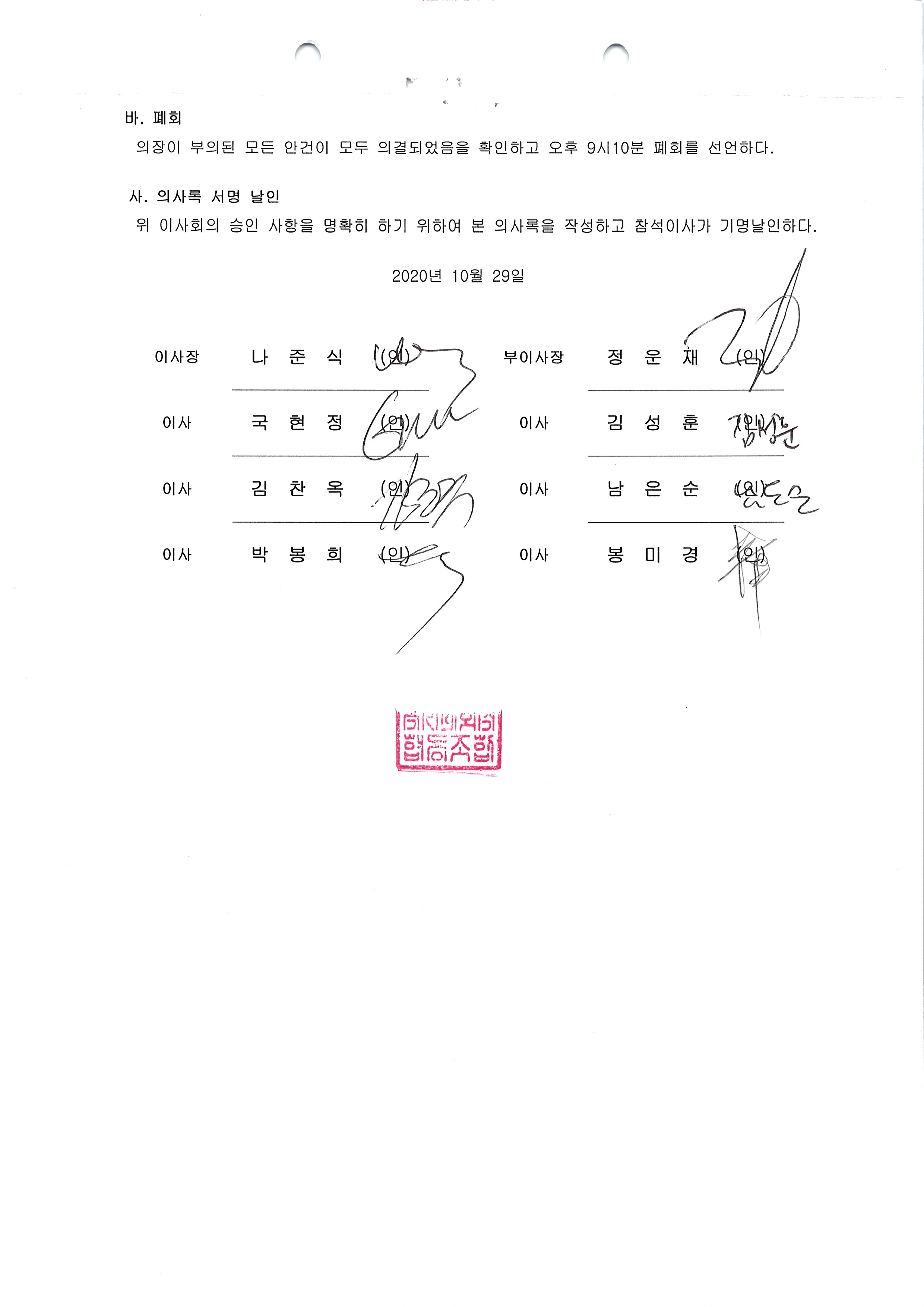 [2020-10] 정기이사회 결과보고