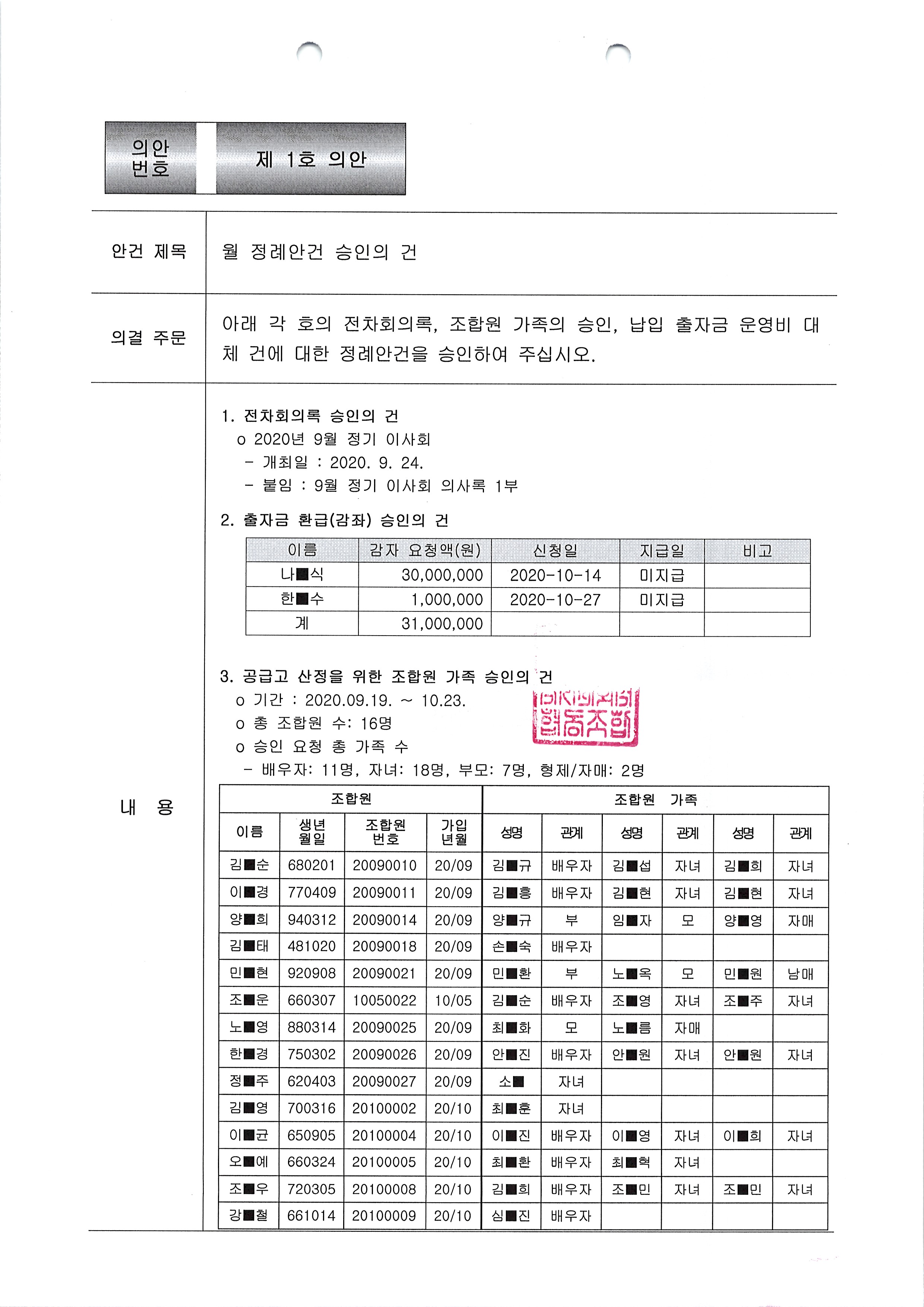 [2020-09] 정기이사회 결과보고