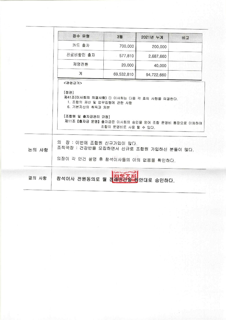 [2021-03] 정기이사회 결과보고