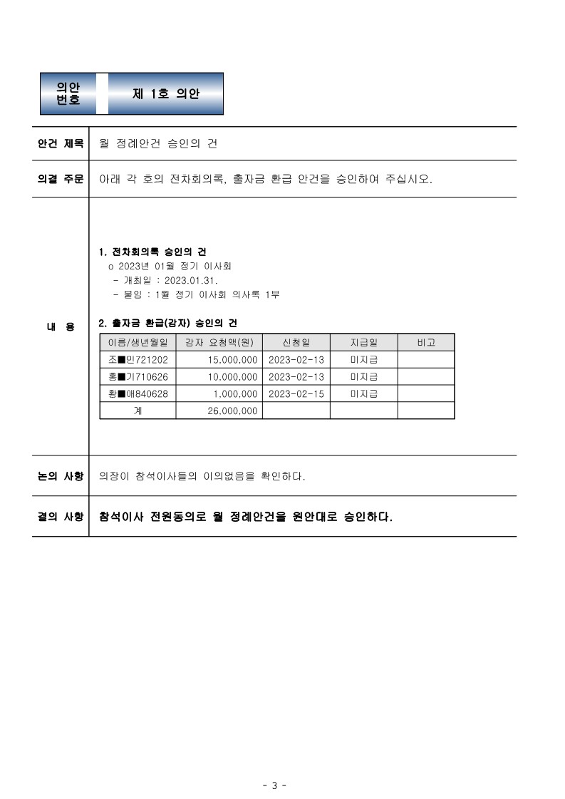 [2023-01] 정기이사회 결과보고
