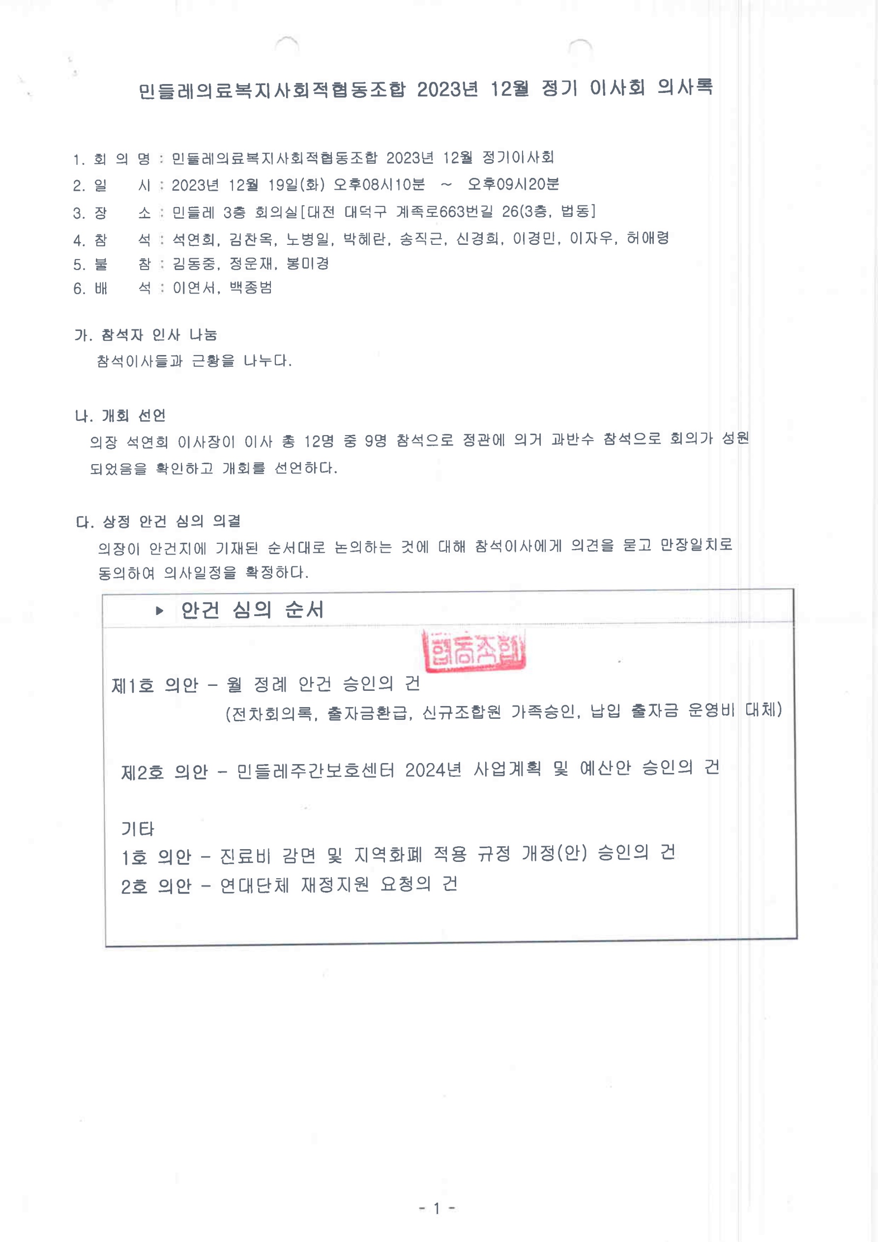 [2023-12] 정기이사회 결과보고