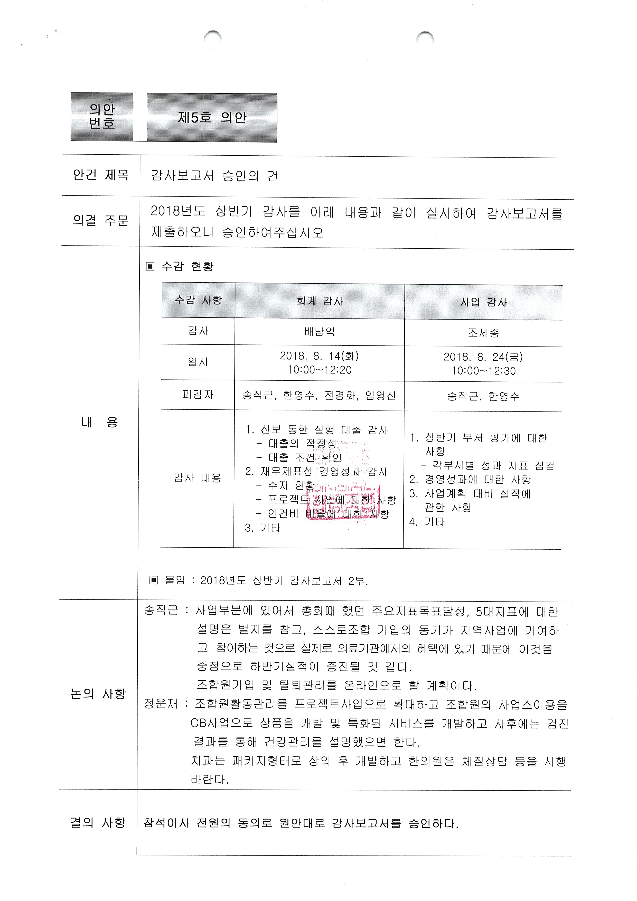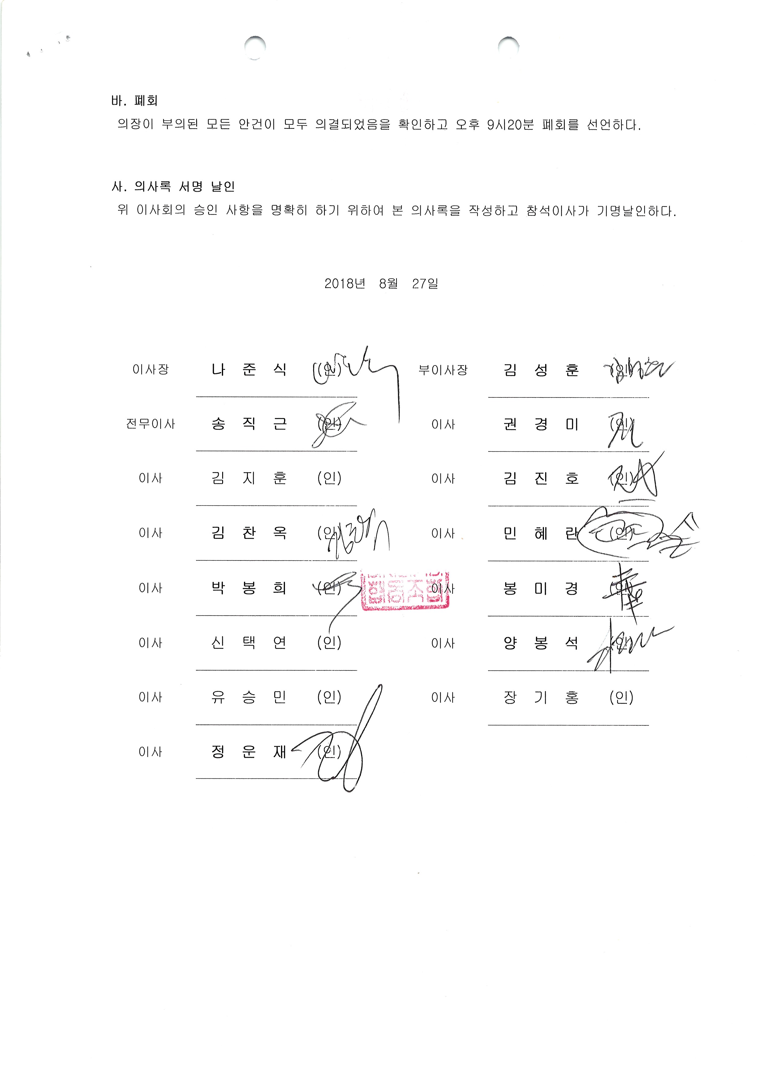 [2018-8] 정기이사회 결과보고