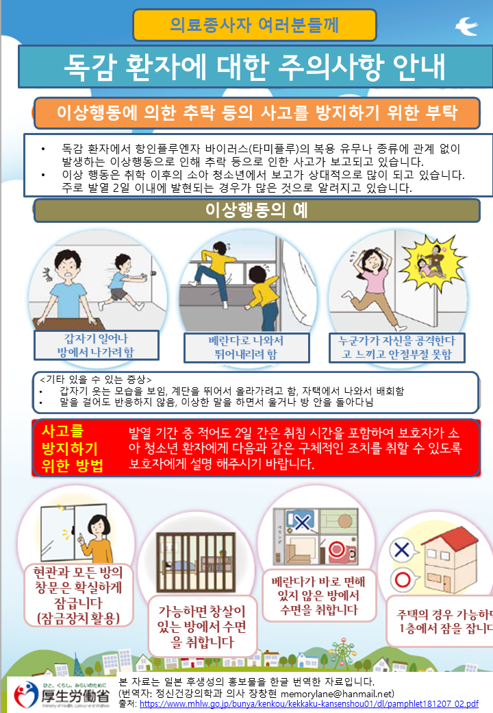 독감환자에 대한 주의사항 안내
