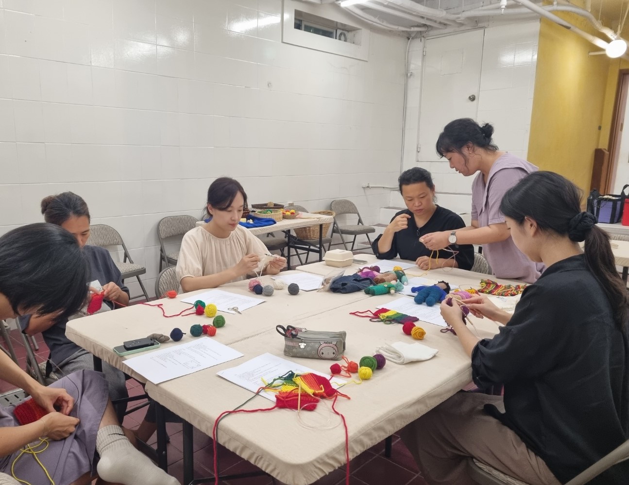 뜨개공 만들기 : 근황 나누기 - 뜨개공, 뜨개 동물인형, 뜨개 사람인형 감상- 겉뜨기 연습하여 공만들기 기본작업 하기